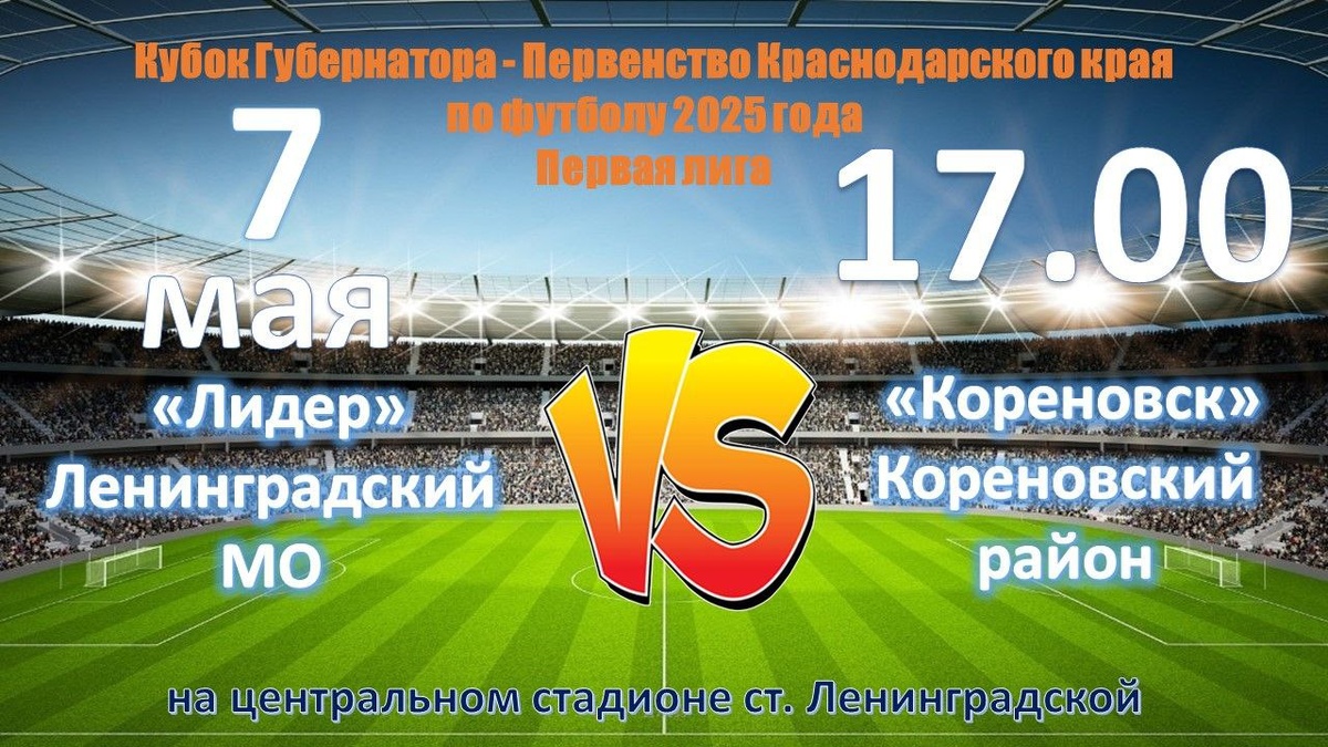 ⚽️7 мая в 17:00 на центральном стадионе Кубок Губернатора - Первенство Краснодарского края по футболу – Первая лига