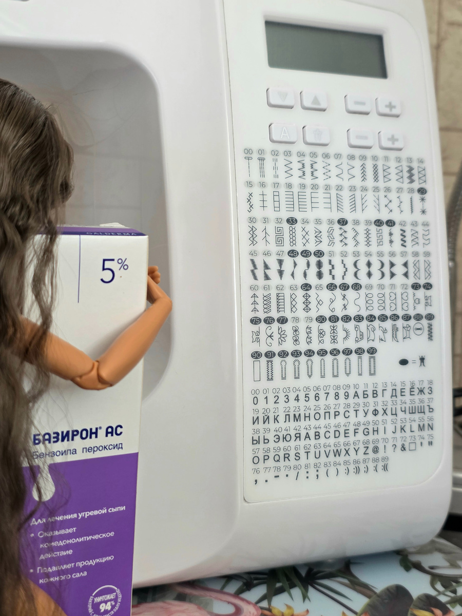 Ввиду полной нехватки времени пока коротенько. Почему-то у меня до сих пор не было базирона. Мелкие "синячки" у кукол всё копились, копились... Последней каплей стала скидка в аптеке 20% и внезапно заболевший краснухой Валера. Лежит лечится) Еще у меня появилась швейная машинка! Мысль вынашивалась давно, но воспоминания об уроках труда в школе внушали ( и пока еще внушают) страх. Или ревущий зверь был очень резок и неуправляем, или я была слишком альтернативно-одаренная. Да и пальцы уже устали от мозолей от иголки. На майских праздниках зверь при участии моего мужа поселился дома, приручаем друг друга. Третья покупка - мой подарок самой себе на ДР, который случится в конце месяца. Я знала, что когда-нибудь её куплю, но цели "здесь и сейчас" не было, так - отложенные надежды... Девушка приехала сильно раньше, а я не могу терпеть, поэтому и без того хлипкая коробка была безжалостно растерзана. Чтобы пересадить барышню, была применена сложная комбинация по замене голов трем куклам,