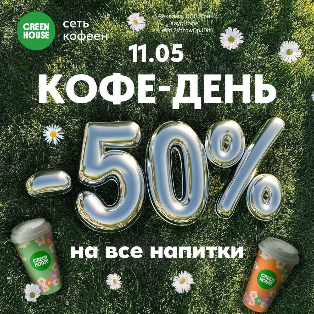 🎉 11 мая бежим в Green House на кофе за полцены! Большая традиция большой кофейной сети – дважды в год устраивать Кофе-день. Это когда на все напитки в меню действует скидка 50%. Это возможность познакомиться с новыми напитками или нашими кофейнями, вернуться за классикой или сделать подарок для близкого человека. 📎 В общем, как беспроигрышная лотерея, для участия в которой нужно зарегистрироваться в Клубе Green House, там еще приветственные 100 бонусов подарят! Подписывайся на канал друзей Green House 💚
