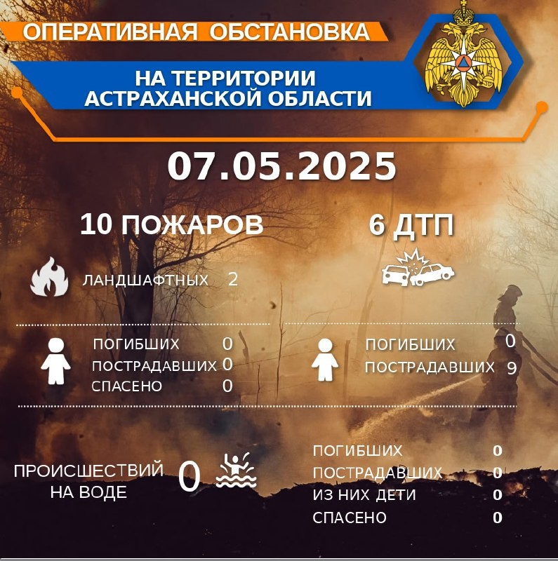 🚨Оперативная обстановка на территории Астраханской области по состоянию на 00:00 07.05.2025