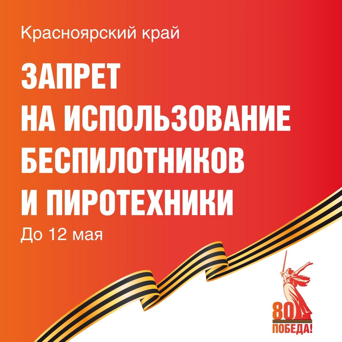 Напоминаем, в Красноярском крае на майские праздники вводится запрет на использование беспилотников и пиротехники