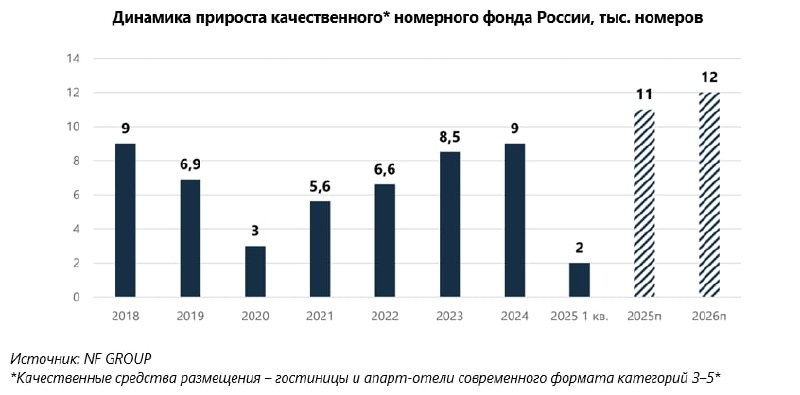 ⚡️ В 2025 году ожидается ввод порядка 11 тысяч качественных гостиничных номеров — NF Group