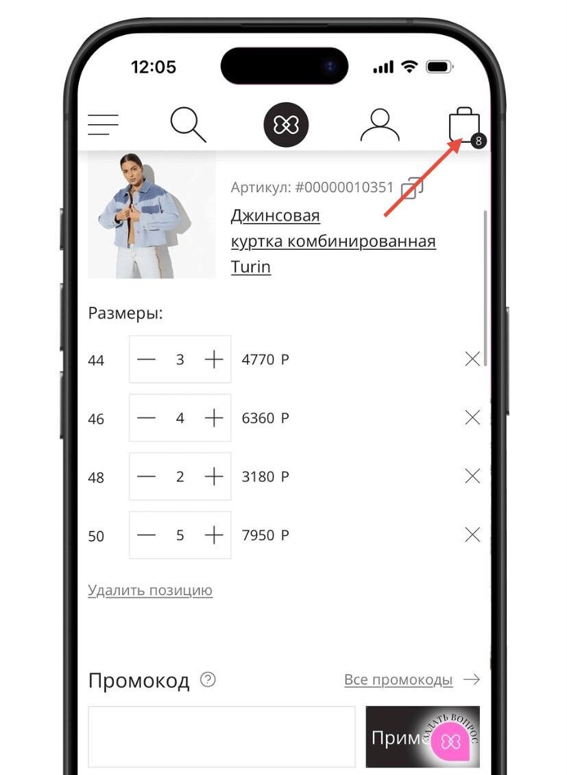 Корзина расположена в правом верхнем углу — она стала ещё удобнее. Все добавленные товары теперь собраны в аккуратном, функциональном окне — только покупки.