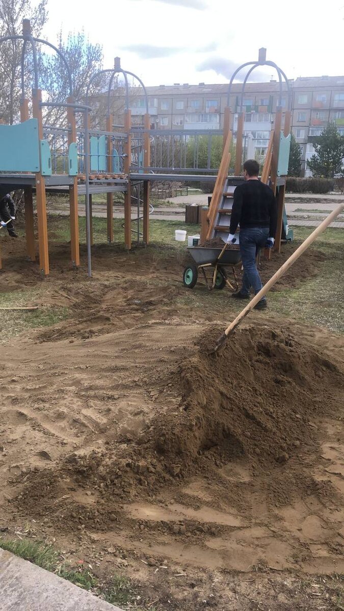 7️⃣мая коллектив администрации Ужура в аллее выпускников провели саночистку территории. По просьбам жителей микрорайона здесь появилась новая игровая площадка, работники администрации отсыпали здесь песок. Администрация города выражает искреннюю благодарность Павлу Ермоленко за предоставленный песок, благодаря которому преобразилось пространство для отдыха и игр!
