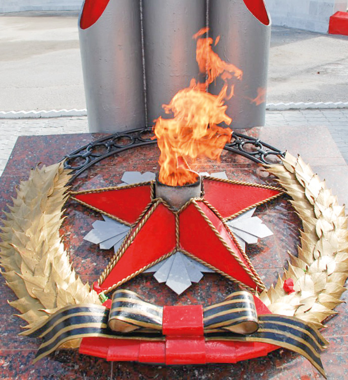 Алые лучи опалены огнём. Он горел днями и ночами и был горьким напоминанием о суровом лихолетье. Звезду обрамляет лавровый венок. Этот символ воинской славы опоясывает траурная лента. Героизм и скорбь переплетены во-едино. Пять поколений пуровчан на этом месте свято чтили память о героях Отечественной войны.