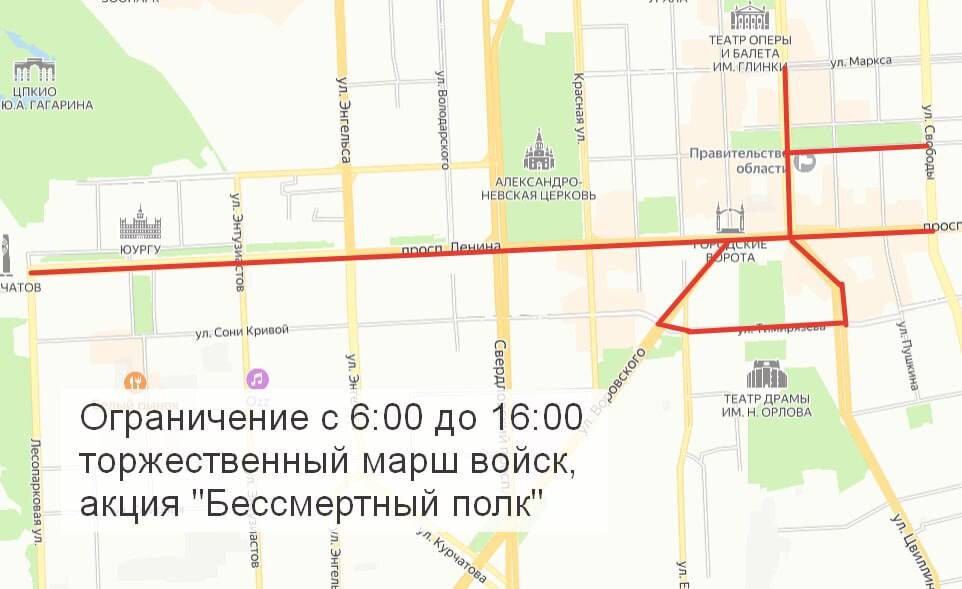 Власти сообщили о масштабных ограничениях на дорогах Челябинска 9 мая