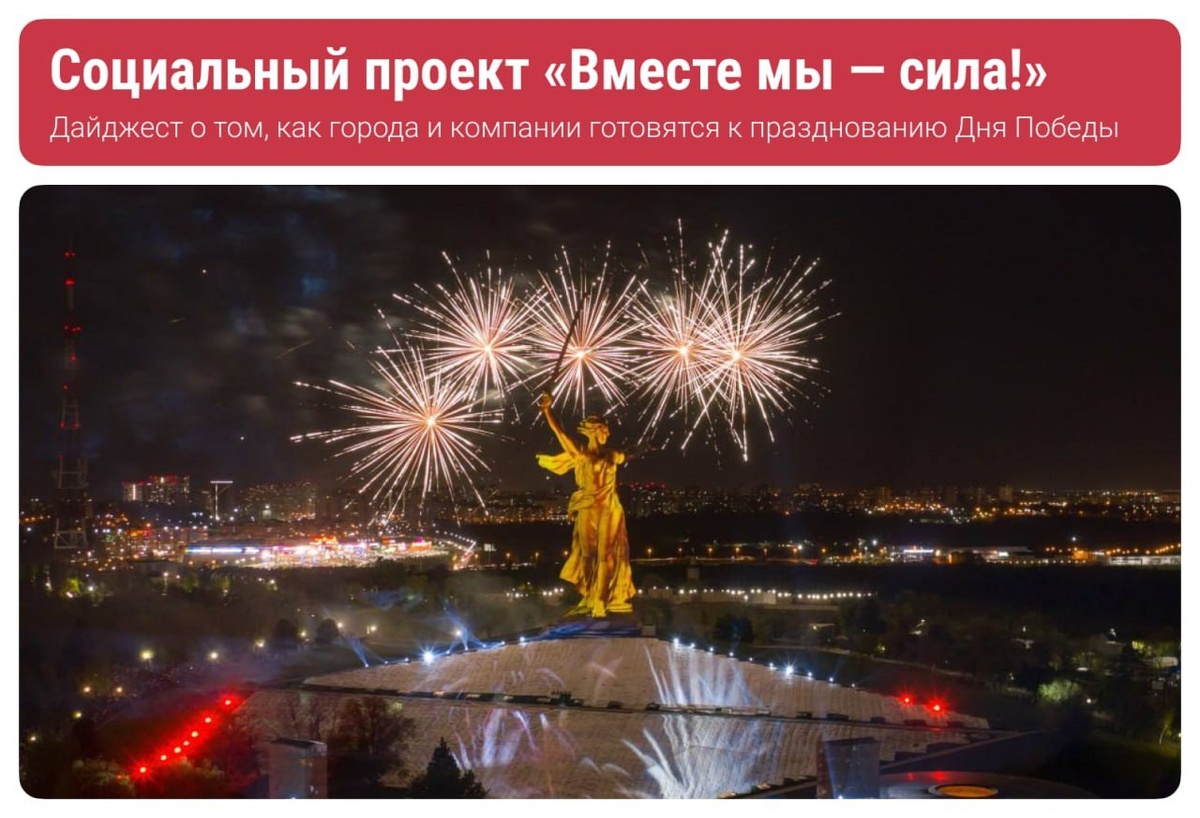 Остается всё меньше времени до празднования 9 Мая⚡️ Предвкушаем старые добрые песни военных лет, семейные альбомы с фотографиями фронтовиков, вкус солдатской каши, цветы к памятникам героев Великой Отечественной войны и поздравление ветеранов. В год 80-летия Великой Победы мы узнали, как готовятся к празднику в городах России компании, придерживающиеся активной социальной политики. П.с. Добрые дела и патриотические инициативы — это весомый плюс к карме и развитию регионов⭐️