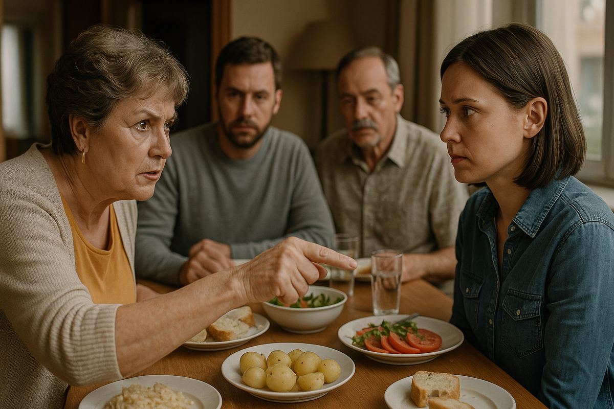 Артём и Марина поженились два года назад, и с тех пор каждое воскресенье обедали у родителей мужа. Семья казалась крепкой: Алексей Петрович — тихий бывший инженер, больше любил починить насос, чем поговорить, а Елена Андреевна — хозяйка с характером, соревновалась с подругой детства, Ириной Николаевной, в ландшафтном дизайне и приготовлении заливного.