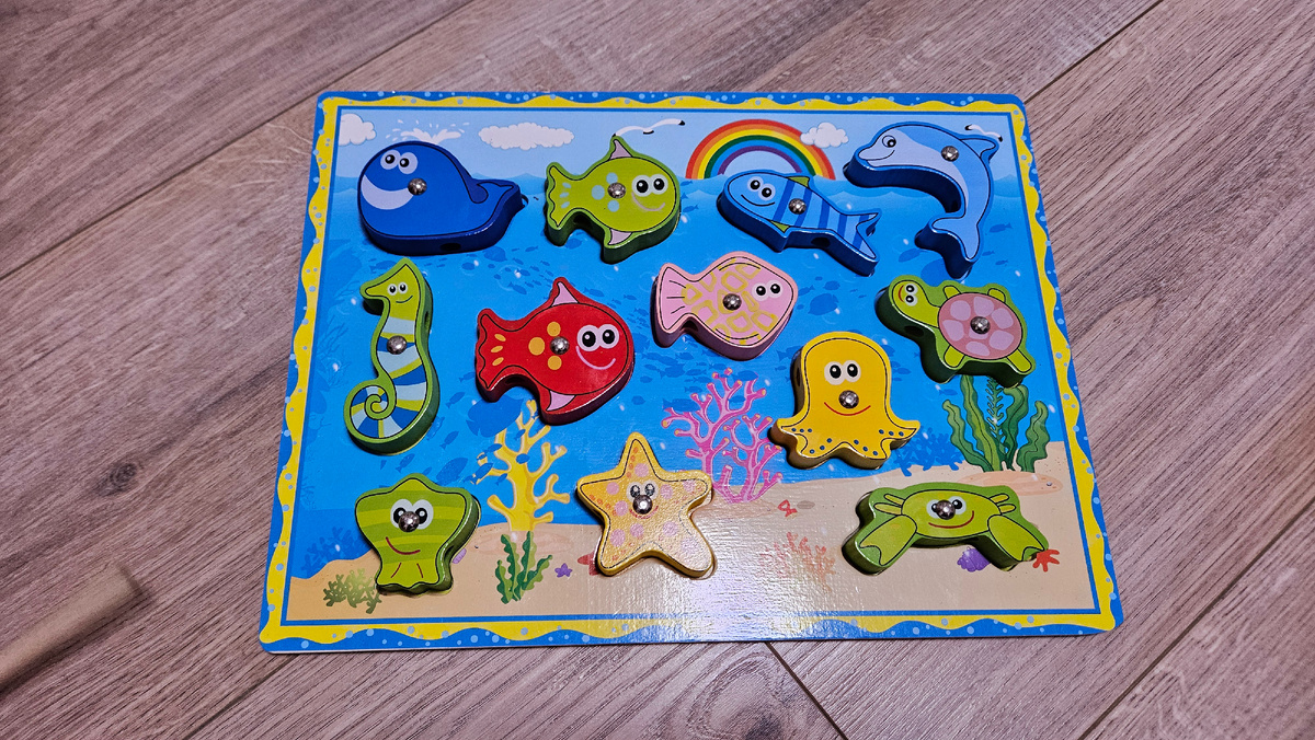 Как порыбачить с ребенком, не выходя из дома? Очень просто! Деревянная игрушка окунет вас в мир морских обитателей.