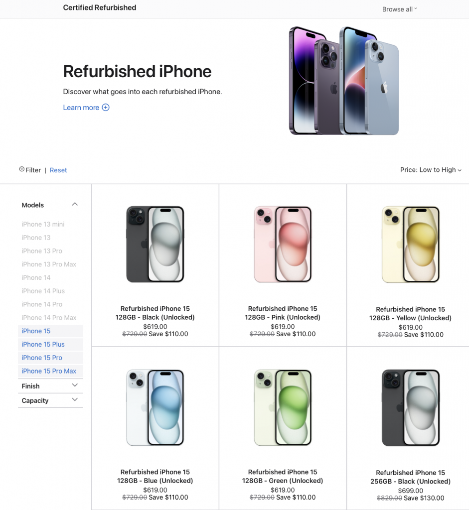 Apple начала продавать официально восстановленную линейку iPhone 15, и эта новость интересна в разрезе текущих реалий на сером рынке РФ
