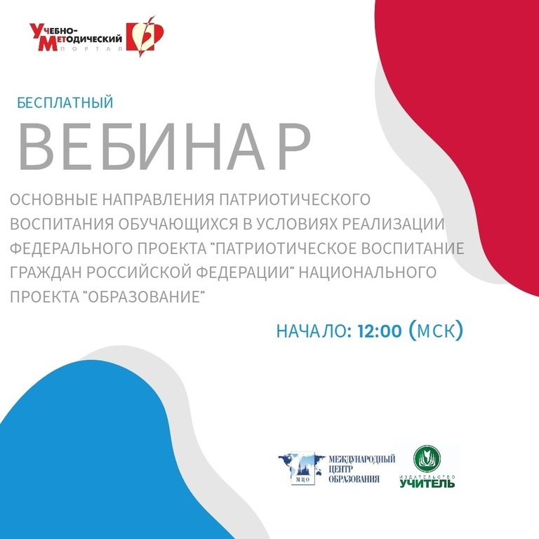 Вебинар «Основные направления патриотического воспитания обучающихся в условиях реализации Федерального проекта “Патриотическое воспитание