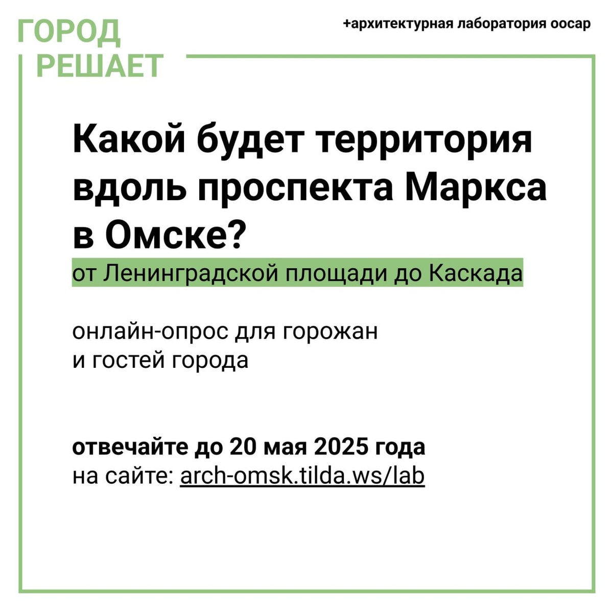 Омский союз архитекторов в рамках Архитектурной лаборатории исследует перспективы развития проспекта Маркса (от Каскада до Ленинградской площади) и приглашает вас принять участие в опросе.