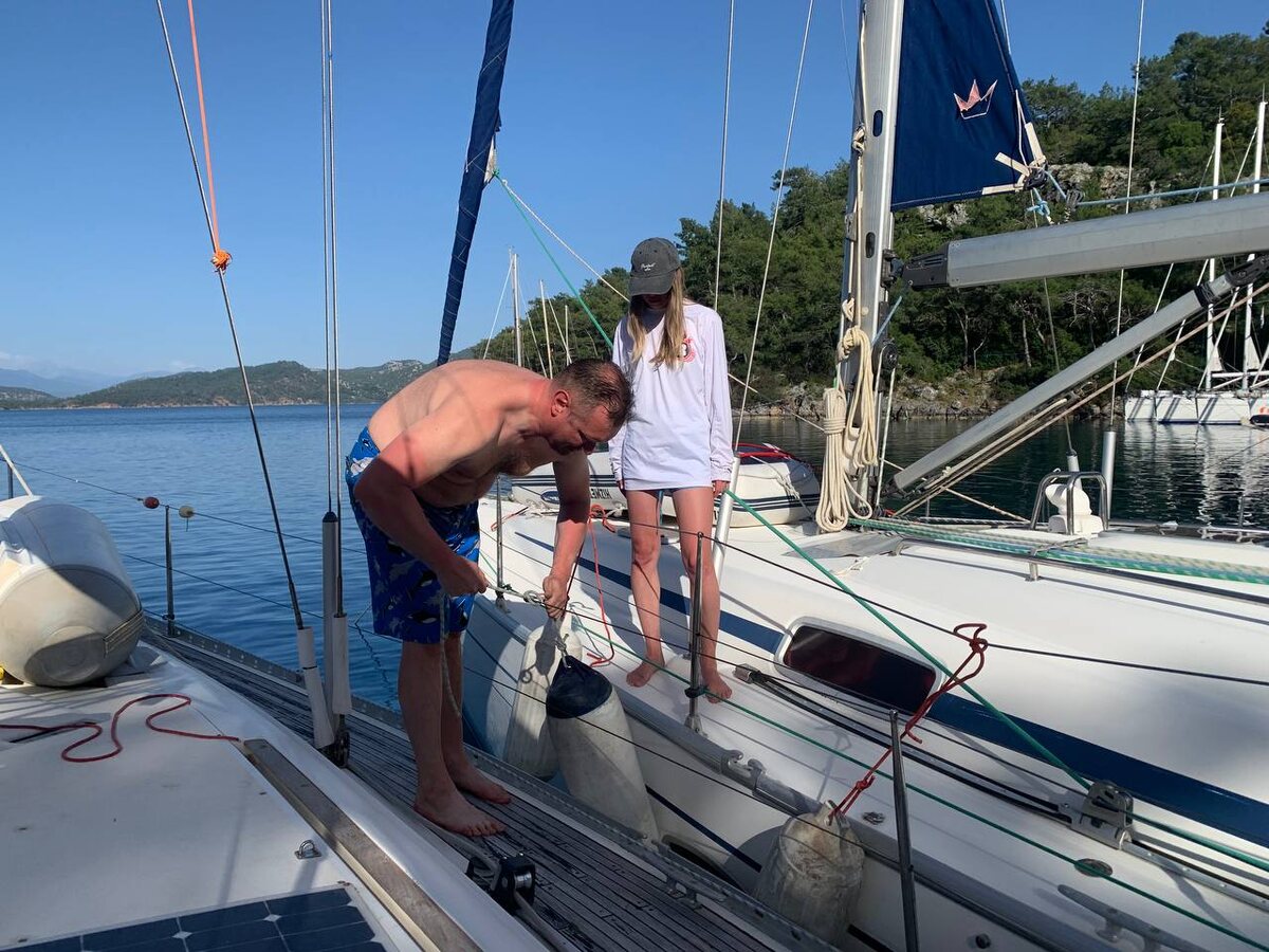 При швартовке и отходе соседней яхты - помогаем