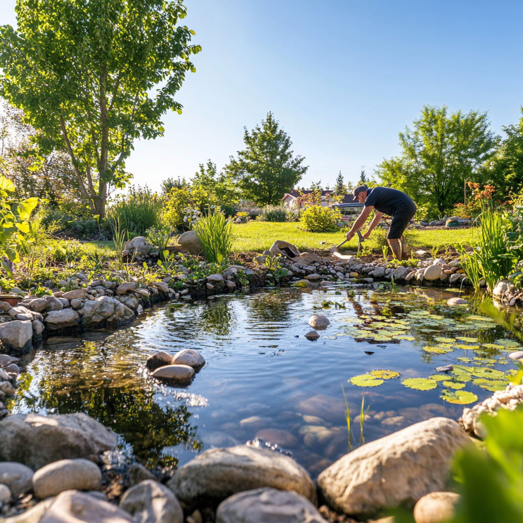 Если есть небольшой склон — отлично. Вода будет стекать естественно. Но и на ровной поверхности пруд получится не хуже. Минимальная глубина — около 80 см. Этого достаточно для кувшинок и декоративной рыбы.