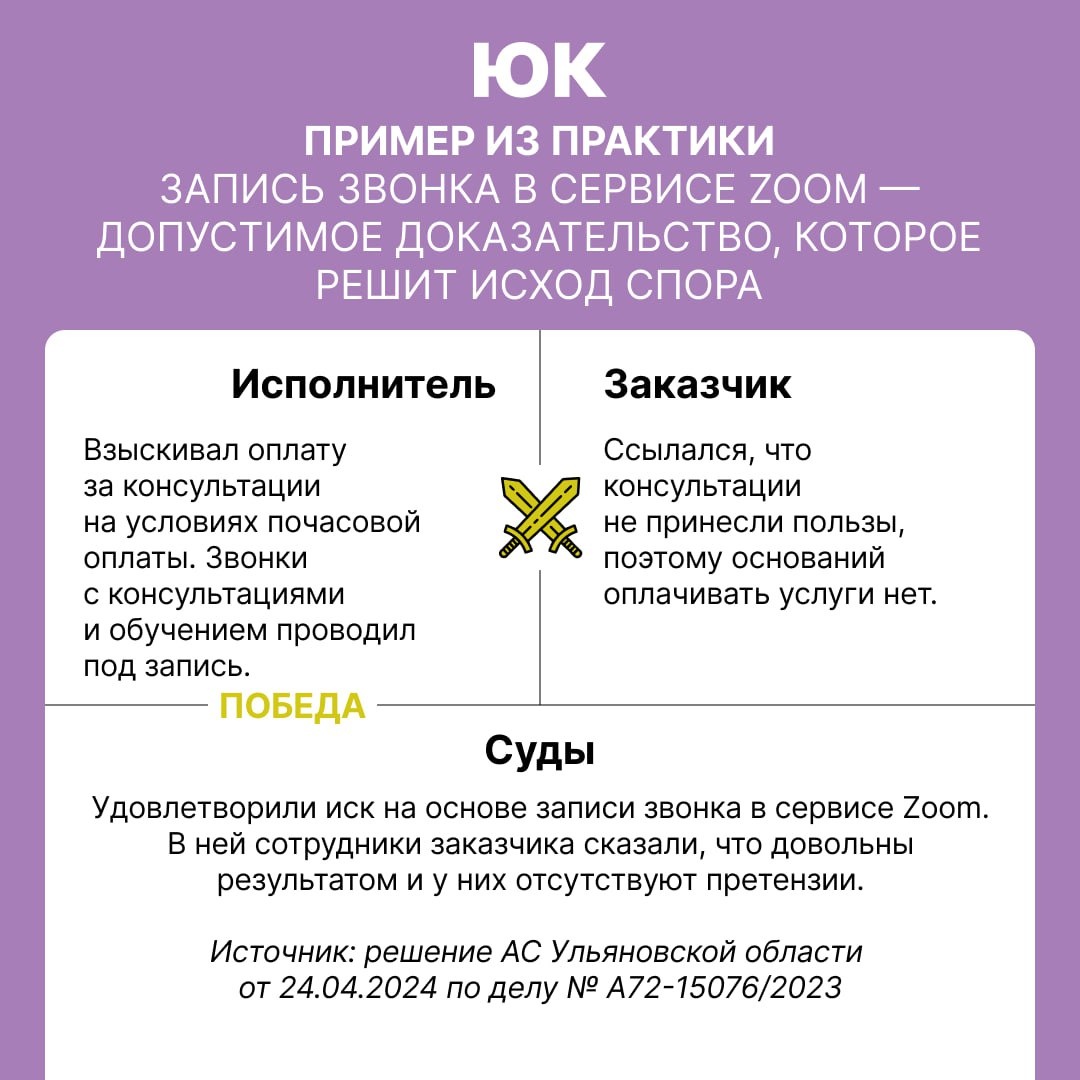Что убедит суд посмотреть видео. Правила, без которых ходатайство отклонят Самой по себе видеозаписи недостаточно, чтобы выиграть спор. Понадобится еще обосновать суду, какие именно обстоятельства подтверждаете с ее помощью. К задаче не следует подходить формально. ⚠️ Необходимо учитывать не только категорию спора: некоторые прямо запрещают использовать видео в качестве основного доказательства, но и фактические возможности доказывания. ⏩️ Важный нюанс: если подробно описать обстоятельства, которые доказываете, удастся приобщить даже такую запись, которую сделали скрыто. Ранее суды однозначно отказывались приобщать такие видео как недопустимое доказательство. Теперь же суды принимают их и отклоняют ссылку ответчиков на то, что те не давали согласия вести съемку, если показать: съемку проводили в общественном месте. На такую съемку не нужно согласия.Ее признают элементом самозащиты гражданского права. В отношении споров о контрафакте высказался даже ВС. Он указал, что видеосъемка