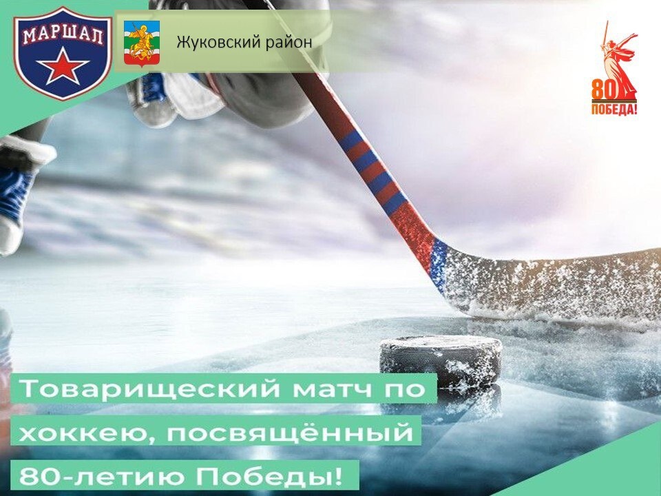 8 мая — хоккейный матч в честь 80-летия Победы! 🏒 В Ледовом дворце "Маршал" состоится товарищеский матч между командами: 🔹 «Маршал» (Жуков) 🔹 «СТП Тим» (Обнинск) 💥 Яркое дополнение — показательные выступления наших фигуристов! ⛸️✨ ⏰ Начало в 19:00 📍 Вход свободный! Приходите всей семьёй — будет зрелищно и патриотично! ❤️💙🤍 #Жуковскийрайон40 #ГБУДОКОСШОРМаршал #ДеньПобеды #Хоккей #Спорт #Жуков