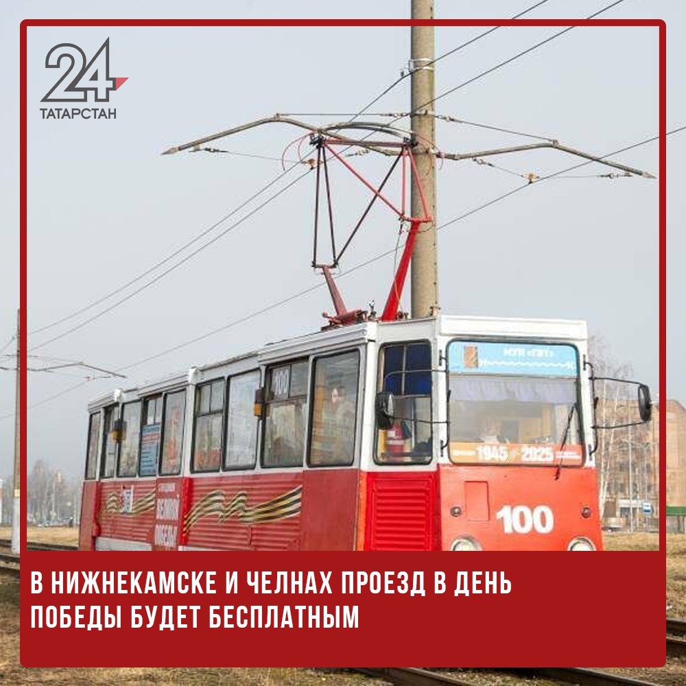 🚂👌 В Нижнекамске и Челнах проезд в День Победы будет бесплатным 9 мая жители и гости Нижнекамска и Набережных Челнов смогут бесплатно пользоваться общественным транспортом. Такое решение приняли исполняющий обязанности руководителя исполкома Нижнекамского района Радмир Беляев и мэр Челнов Наиль Магдеев. Мера направлена на то, чтобы все желающие смогли без затруднений добраться до праздничных мероприятий и прочувствовать атмосферу Дня Победы. Подписаться на Татарстан-24 Отправить новость