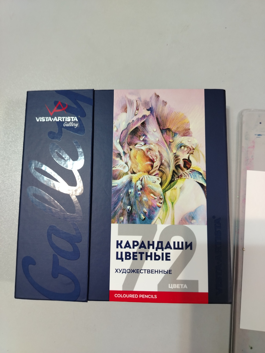 Вместе с набором Intense для себя мой муж решил порадовать меня "дорохим-бохатым" набором карандашей в аж 72 штуки. Правда, он забыл спросить, нужно ли мне такое счастье, но это было еще до того, как я скрежетала зубами над Интенсами. Хотя качеством от "Гаммы" я впечатлилась еще годы назад. Так что пришлось пробовать) Упаковка имеет "подарочный" вид - такая книжечка из плотного картона. На обложке - прекрасный ирис (который вы не нарисуете этими карандашами, ахаха). Ну, в принципе, понятно, почему мой супруг решил, что мне понравится. Внутри она раскладывается на три пенальчика по 24шт. Пеналы на магнитах. Сами карандаши спокойно "гуляют" внутри мягкого пенала вверх=вниз и влево-вправо. Изготовитель заботливо положил нам листочки для выкрасок. Карандаши сами по себе тоненькие, с относительно толстым грифелем. На обороте написано, что они из химически не обработанной липы. Нумерация присутствует. И даже есть маркировка светостойкости. Выкраска уже шепчет мне: "Это Гамма, детка". Пигмент