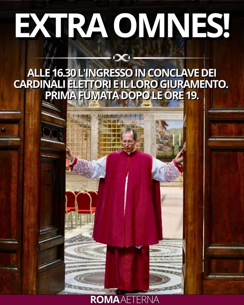 В 10:00 Месса за избрание Римского Понтифика в Базилике Святого Петра. В 16:30 кардиналы собираются в закрытой Сикстинской капелле. Около 19:00 ожидается результат единственного голосования дня. Ожидается 250 тысяч человек.