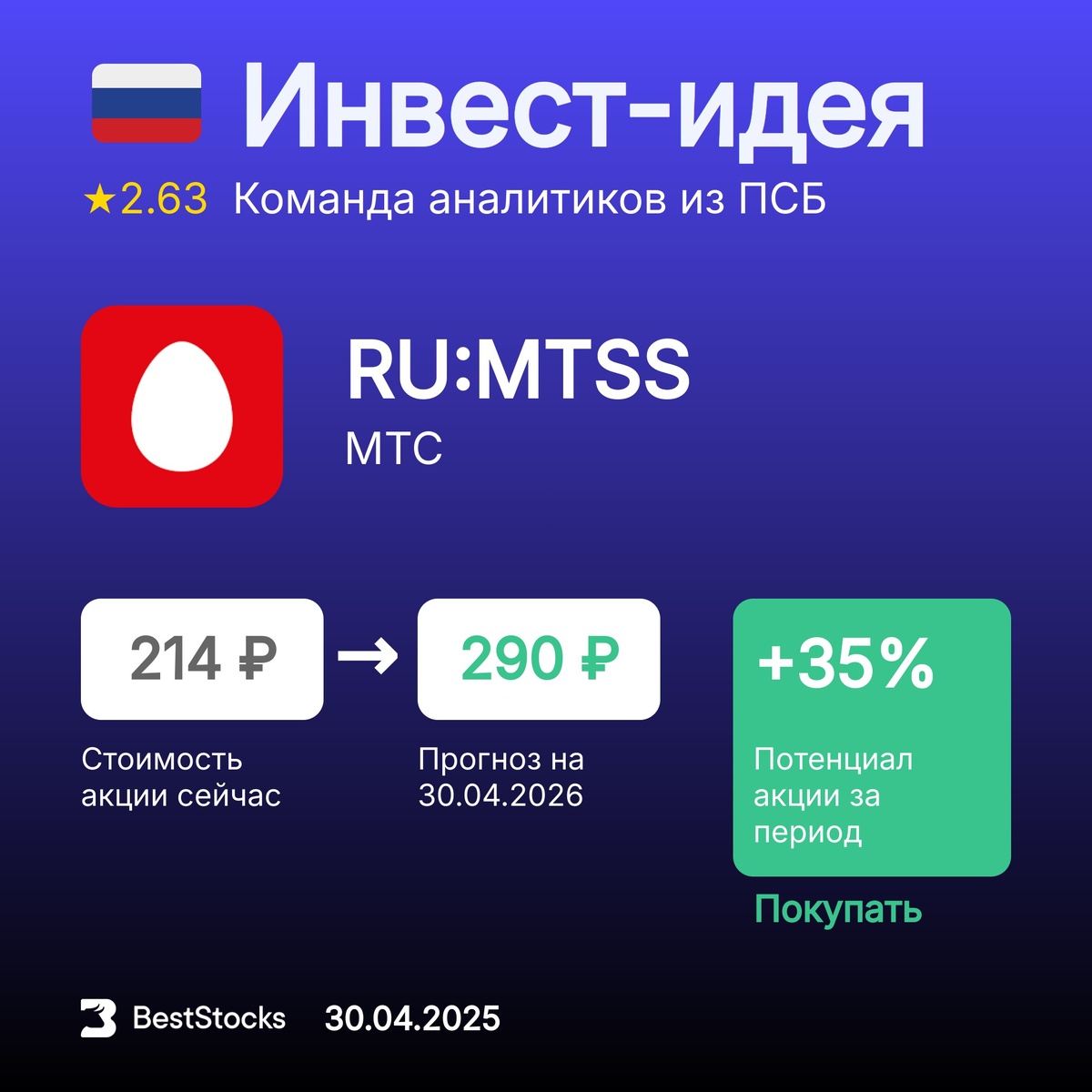 π·πΊ ΠΠ½Π²Π΅ΡΡ-ΠΈΠ΄Π΅ΠΈ ΠΏΠΎ ΡΡΡΡΠΊΠΈΠΌ Π°ΠΊΡΠΈΡΠΌ ΠΡΠΎΠ³Π½ΠΎΠ· ΠΏΠΎ Π°ΠΊΡΠΈΠΈ ΠΠ’Π‘ ΠΡΠΎΠ³Π½ΠΎΠ·Π½Π°Ρ ΡΠ΅Π½Π°: 290 β½ (+35%) Π Π΅ΠΊΠΎΠΌΠ΅Π½Π΄Π°ΡΠΈΡ: ΠΠΎΠΊΡΠΏΠ°ΡΡ ΠΠ°ΡΠ° ΠΏΡΠΎΠ³Π½ΠΎΠ·Π°: 30.04.2025 ΠΡΠΎΠ³Π½ΠΎΠ· Π΄ΠΎ: 30.04.2026 ΠΠ½Π²Π΅ΡΡ-ΠΊΠΎΠΌΠΏΠ°Π½ΠΈΡ: ΠΠ‘Π ΠΠ²ΡΠΎΡ ΠΏΡΠΎΠ³Π½ΠΎΠ·Π°: ΠΠΎΠΌΠ°Π½Π΄Π° Π°Π½Π°Π»ΠΈΡΠΈΠΊΠΎΠ² ΠΡΡ ΡΠ΅ΠΊΠΎΠΌΠ΅Π½Π΄Π°ΡΠΈΠΈ Π½Π° ΡΠ΅Π³ΠΎΠ΄Π½Ρ β β’β’β’β’β’ π Π‘Π΄Π΅Π»Π°Π»ΠΈ Π΄Π»Ρ Π²Π°Ρ ΡΠΏΠΈΡΠΎΠΊ ΡΠΎΠΏ-25 Π»ΡΡΡΠΈΡ
