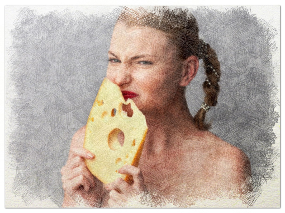 Витрина сырного отдела сверкала, как театральные подмостки. Ряды золотистых голов, завернутых в вощеную бумагу, розоватые круги с мраморными прожилками, белоснежные бруски в соломенных оплетках — все это создавало ощущение праздника. Я остановилась перед полкой с голубоватыми прожилками, где под стеклом покоился король сегодняшнего ужина — сыр с благородной плесенью. Его корочка напоминала лунную поверхность, испещренную кратерами, а сквозь прозрачную упаковку проступали сине-зеленые узоры, похожие на морозные узоры на окне. — Подскажите, этот сыр свежий? — спросила я у продавщицы, тронув кончиком пальца холодное стекло витрины. Женщина за прилавком, чей белоснежный халат контрастировал с румяными щеками, подняла на меня глаза. В них мелькнула тень сомнения. Она оглянулась по сторонам, словно проверяя, не подслушивает ли кто, затем наклонилась ко мне через прилавок, и я уловила тонкий аромат молока и свежего хлеба, исходящий от ее одежды. — Вы знаете, — прошептала она, прикрывая рот ла