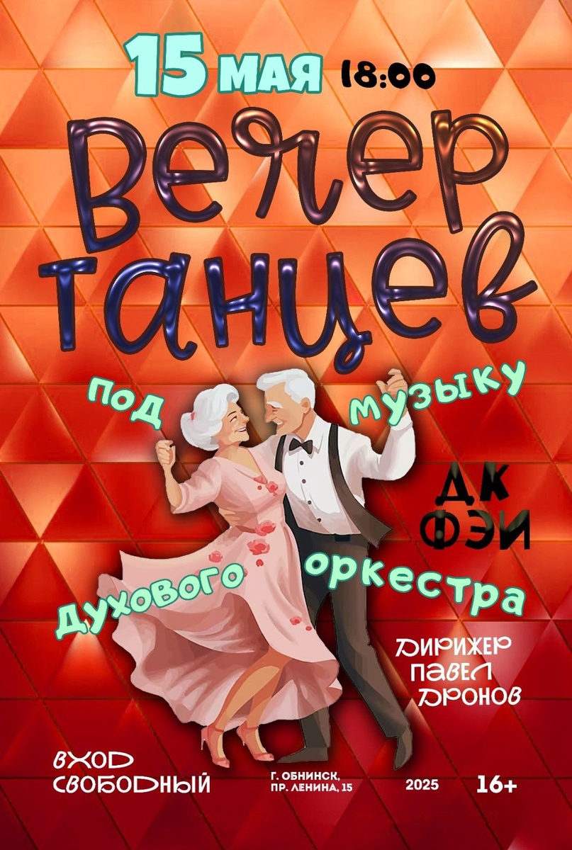 🎶15 мая в 18:00 в ДК ФЭИ в Обнинске пройдёт вечер танцев под музыку духового оркестра МАУ «ДК ФЭИ» под управлением дирижёра Павла Дронова.