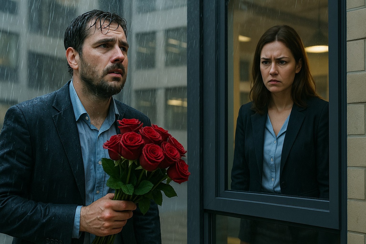 Прошло полгода. Матвей пытался вернуть её. Писал, звонил, даже приходил к офису. Однажды он стоял под её окнами, мокрый от дождя, с букетом роз.