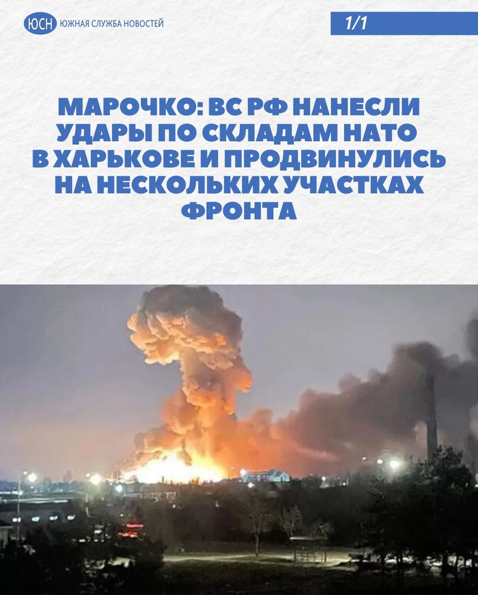 🔹 Марочко: ВС РФ нанесли удары по складам НАТО в Харькове и продвинулись на нескольких участках фронта