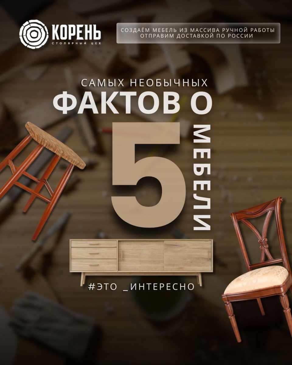 #интересные_факты #фактыпромебель #полезно_знать 5️⃣ ИНТЕРЕСНЫХ ФАКТОВ ПРО МЕБЕЛЬ ⬇️ 🔢Сначала был стул, потом появилась кровать, третьим изобретением мебели стал шкаф. «Предками» современных шкафов были обыкновенные сундуки, которые постепенно росли в высоту. Считается, что первые шкафы появились в феодальной Европе, откуда и распространились по всему миру. Шкафы средневековья были похожи на копии замков, башенок, колонн и даже деревянных скульптур. 🔢 Сегодня сложно выяснить, кто придумал шкаф-купе. Чаще всего авторство таких шкафов приписывают Наполеону, который приказал организовать в небольших квартирах офицеров раздвигающиеся ширмы, за которыми пряталось обмундирование. Благодаря этому жилье содержалось в чистоте и порядке, а мундиры – в отличном состоянии. 🔢 Комод, так называемый «ящик на ящике», был изобретен чуть более 300 лет назад американцем Томасом Элфом, легендой мебельного производства. В его родном городе Чарльстон в зависимости от сезона обеспеченные люди часто пер