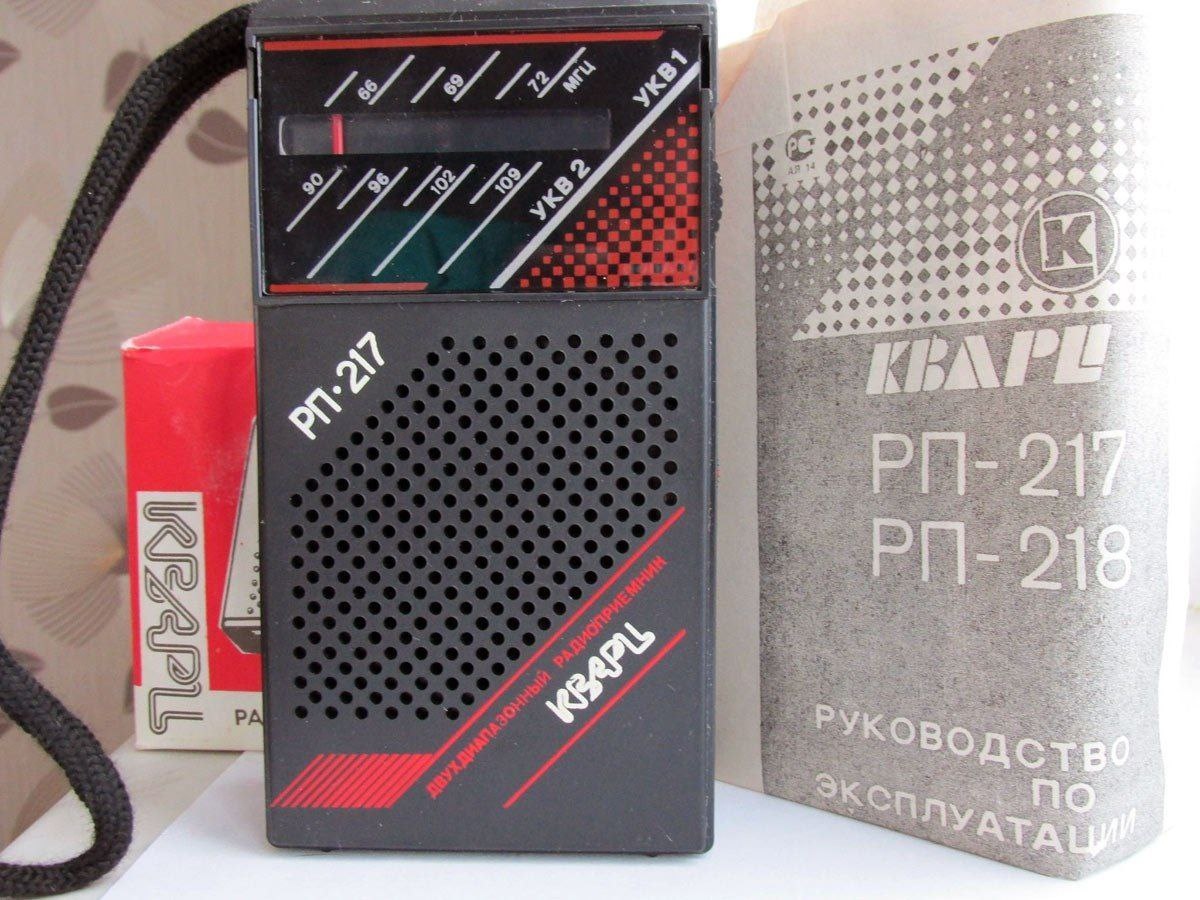 Малогабаритные радиоприёмники «Кварц РП-217» и «Кварц РП-218». С 1994 года Кыштымский радиозавод производил радиоприёмники серии «Кварц». Модель Кварц РП-217 работала в диапазонах ЧМ (65,8–74 МГц) и FM (88–108 МГц). Её чувствительность в диапазоне ЧМ составляла 500 мкВ, а в диапазоне FM — 350 мкВ. Номинальная выходная мощность составляла 80 мВт, максимальная — 120 мВт. Диапазон воспроизводимых громкоговорителем звуковых частот достигал 250–4000 Гц. Питание приёмника осуществлялось от трёх элементов типа АА. При средней громкости потребляемый ток составлял около 50 мА. Размеры устройства — 142х75х40 мм, а вес — 220 грамм. *Кварц РП-218* отличался от предыдущей модели отсутствием диапазона 88–108 МГц. Первые выпуски приёмников оснащались телескопической антенной, однако впоследствии она была заменена на отрезок провода, помещённый в шнурок для переноски. В результате чувствительность устройства, и без того низкая, ухудшилась почти вдвое. ➖➖➖➖ РАДИО(73!)
