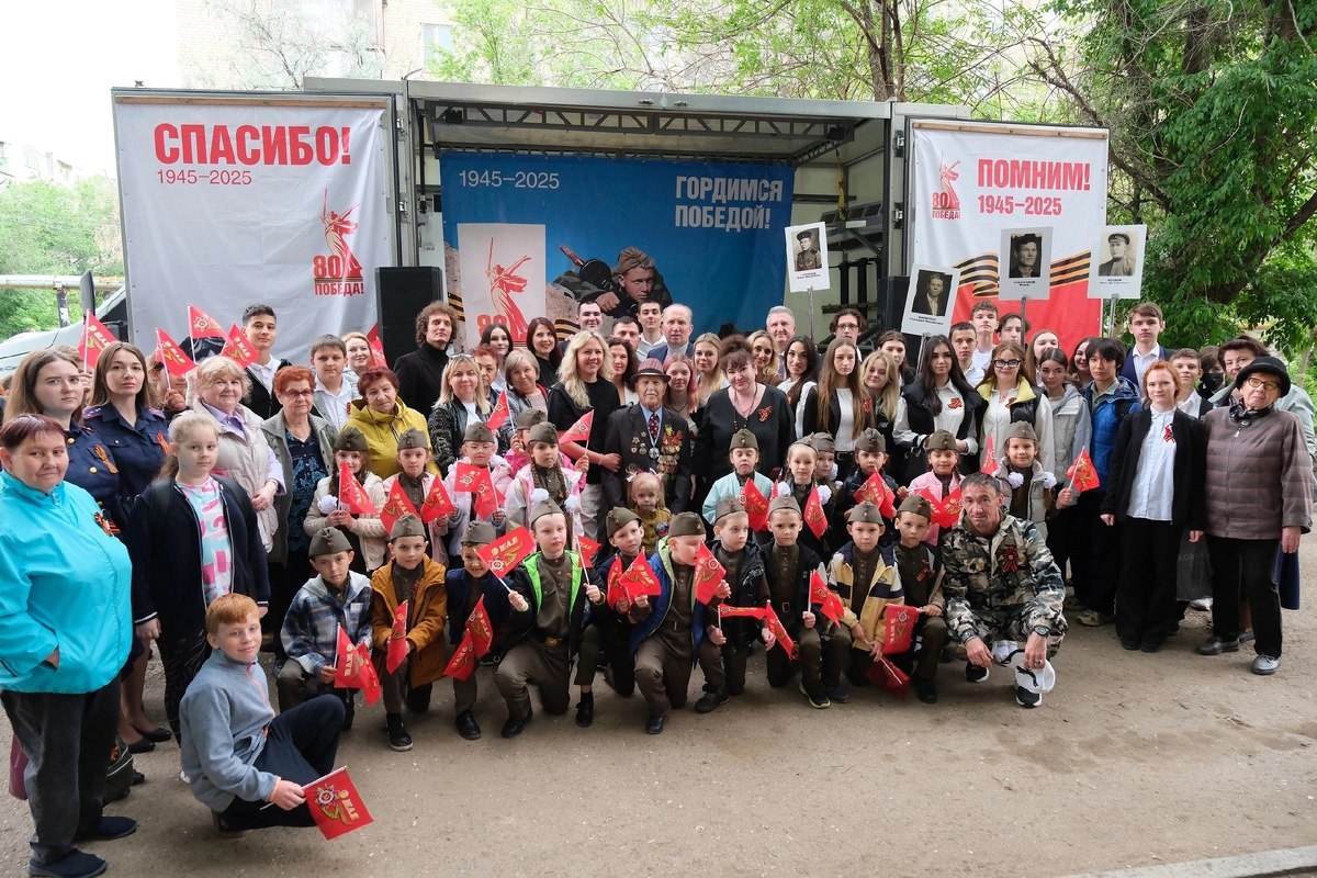 В преддверии 80-й годовщины Великой Победы «Фронтовая бригада» артистов астраханского Дворца культуры «Аркадия» провела праздничный концерт во дворе дома ветерана Великой Отечественной войны Степана Гладилина. В торжественном мероприятии принял участие заместитель Председателя Думы Астраханской области Олег Петелин.