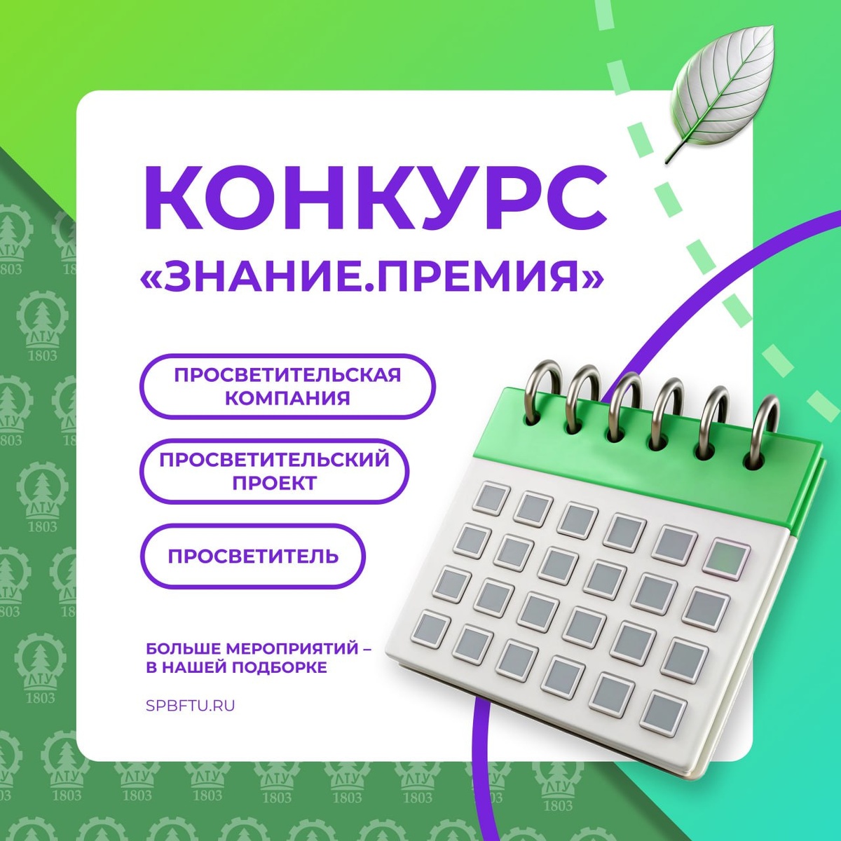 Дорогие друзья ⚡️ Приглашаем вас принять участие в проекте «Знание.Премия». 🎯 Цель премии — подчеркнуть важность просветительской деятельности и повысить престиж её представителей как в России, так и за её пределами. ✅ Премия пройдет по 3 категориям номинантов: • Просветитель • Просветительский проект • Просветительская компания В пятом сезоне заявки будут приниматься в 18 номинациях, а также новая номинация — «За вклад в сохранение памяти о подвигах защитников Отечества», приуроченная к Году защитников Отечества в России. 👨🏫 Жюри выберут выдающихся просветителей и лучшие проекты, которые внесли значительный вклад в развитие просвещения в своих регионах. Подробнее о правилах участия, сроках подачи заявок и критериях отбора смотри по ссылке 👈