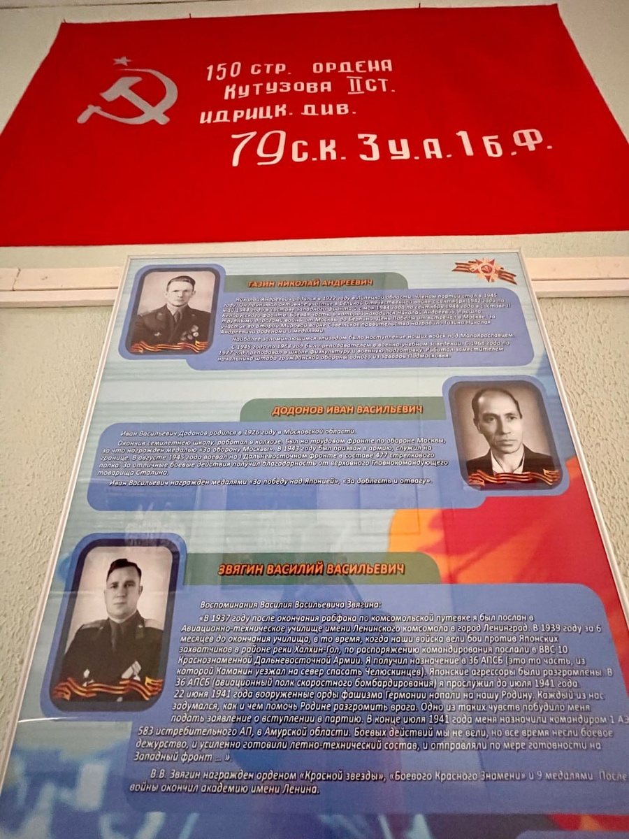 Передача эстафеты памяти: во 2-м управлении ЦПК обновили экспозицию к юбилею Победы Стенды с биографиями сотрудников Центра подготовки космонавтов и жителей Звёздного городка – участников Великой Отечественной войны можно увидеть на первом этаже здания 2-го управления, в переходе к залу тренажёров ТПК «Союз». Материалы для экспозиции первоначально собирали ученики школы имени В.М. Комарова, они оформили альбом, который хранился в музее. В 2015 году, к 70-летию Победы специалисты молодёжного центра «Галактика» оцифровали материалы и опубликовали их на сайте. Патриотический проект нашёл отклик и в Центре подготовки космонавтов. Биографии фронтовиков разместили на стендах в переходе к залу тренажёров ТПК «Союз», где с ними могли ознакомиться не только сотрудники Центра, но и многочисленные экскурсионные группы. Спустя 10 лет, в преддверии 80-летия Победы сотрудники Центра при поддержке и активном содействии профкома и руководства ЦПК обновили экспозицию, придав стендам современный об