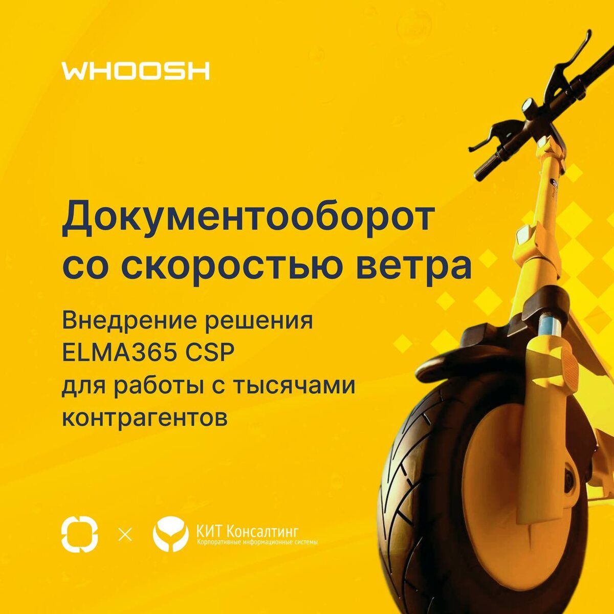 Документооборот со скоростью ветра! ⚡️Российский сервис шеринга самокатов Whoosh (ПАО «ВУШ Холдинг») внедрил решение по управлению договорами на базе Low-code платформы ELMA365. Внедрение выполнила IT-компания «КИТ Консалтинг». Whoosh работает с тысячами контрагентов: от небольших локальных компаний до международных партнеров. Проект реализован на базе платформы ELMA365 CSP с глубокой адаптацией под сложную организационную структуру заказчика и интеграцией с внешними сервисами. С результатами внедрения уже можно ознакомиться на сайте 🛴