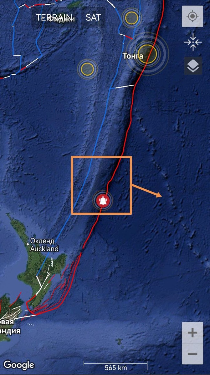 Есть вероятность землетрясения М5.7+ севернее Новой Зеландии в районе архипелага Кермадек в течение 7-9 дней