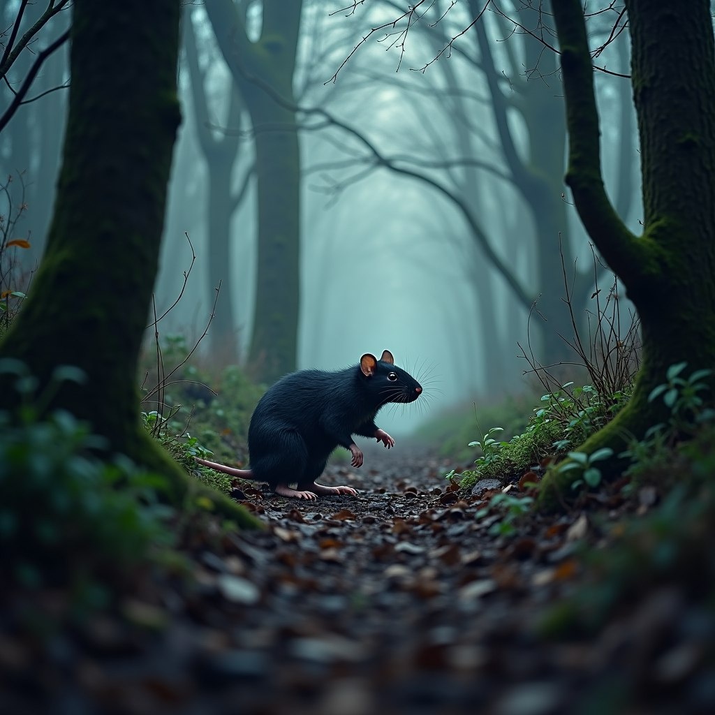 Крыса углублялась всё дальше в Чёрный лес – место, куда даже самые отчаянные не рисковали заходить. Здесь обитал Седой Клык – древний волк, чье имя произносили шёпотом. Говорили, что когда-то он был вожаком огромной стаи, но предательство соплеменников изменило его навсегда. Теперь он жил отшельником, убивая любого, кто осмеливался нарушить его покой. Лишь самые старые обитатели леса помнили, как Седой Клык расправился с той стаей предателей: за одну ночь от неё не осталось и следа.