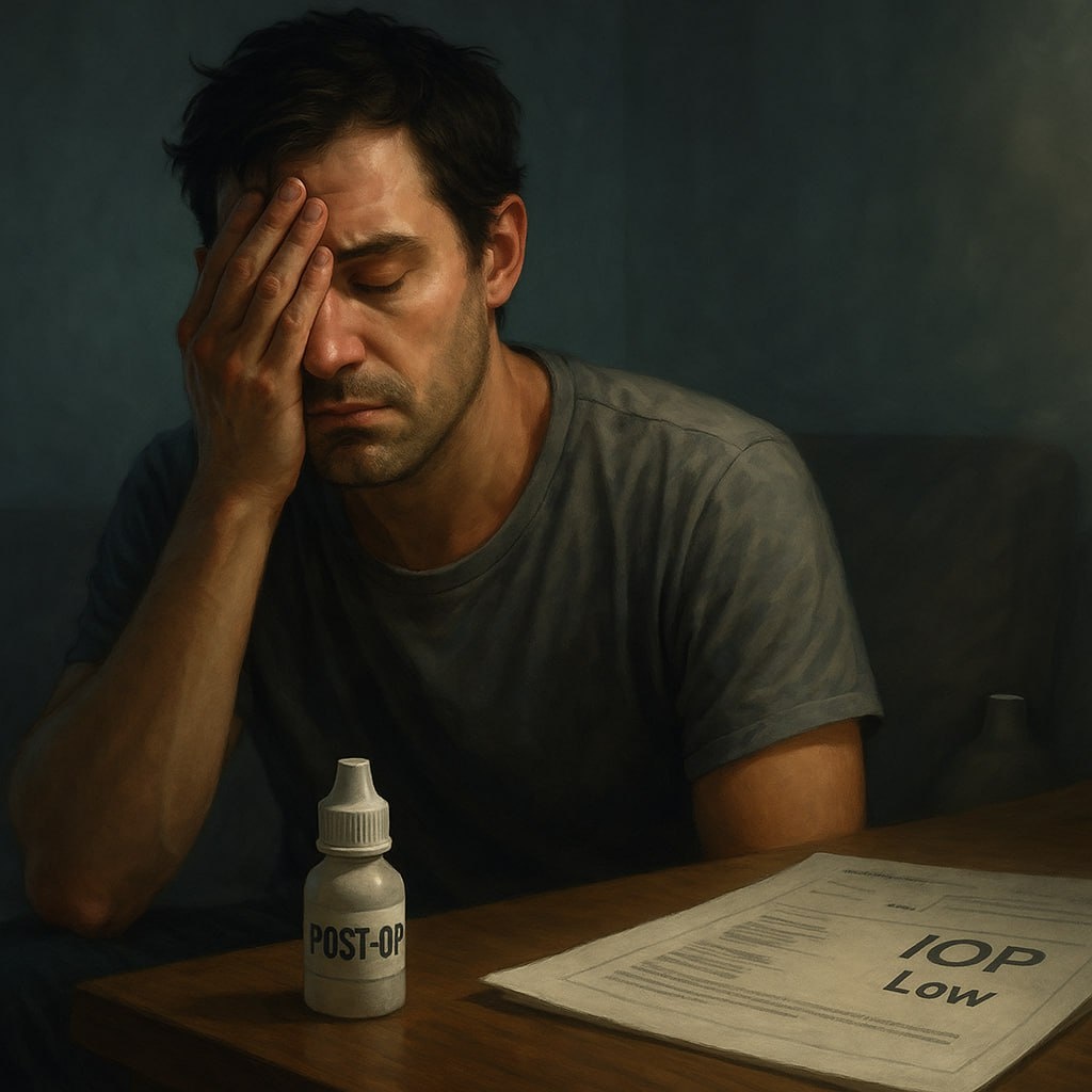 С чем связано то, что состояние внутриглазной гипотонии сопровождается такими симптомами, как боль в глазу, головокружение, тошнота, слабость, апатия. Каков механизм этого состояния? Внутриглазная гипотония — это не просто «низкое давление», как многие думают. Это декомпенсация всей гидродинамической системы глаза, и она действительно может вызывать системные и глазные симптомы, особенно при остром развитии. Что такое глазная гипотония? – Обычно говорят о гипотонии при ВГД < 6 мм рт. ст. – Критической считается < 4 мм рт. ст., особенно если сохраняется больше суток. – Может быть после операции, травмы, воспаления, утечки жидкости через фильтрующую зону или свищ. Почему возникает боль? – При гипотонии глаз теряет форму и тонус. – Это вызывает натяжение сосудистой оболочки, деформацию ресничного тела, раздражение цилиарных нервов. – Особенно выражено у пациентов после антиглаукомных операций Откуда тошнота, головокружение, апатия? В глаз входит огромное количество вегетативных и чувст