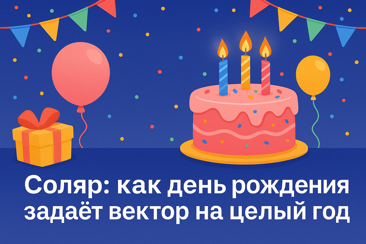 Вы когда-нибудь чувствовали, что один год жизни проходит как на подъёме, а другой — будто пробуксовка? В астрологии это объясняется просто — каждый день рождения открывает новый личный астрологический цикл, и его качества можно узнать заранее. Это и есть Соляр. Соляр — это персональный гороскоп, составляемый на момент возвращения Солнца в ту же точку, где оно находилось в момент вашего рождения. Это не обязательно строго день рождения: иногда соляр случается за день или даже за несколько часов до него. По сути, это как астрологический прогноз-погода на ближайшие 12 месяцев. И если знать заранее, где ждать шторма, а где ясного неба — можно выстроить стратегии, выбирать подходящее время для важных решений. Многие люди встречают день рождения в специально выбранном городе, чтобы скорректировать энергии года под свои цели. Это называется релокация соляра. Но давайте рассуждать логически. У вас есть трудноизлечимая болезнь, долги или какая-то другая крупная проблема. Испарится она лишь из-
