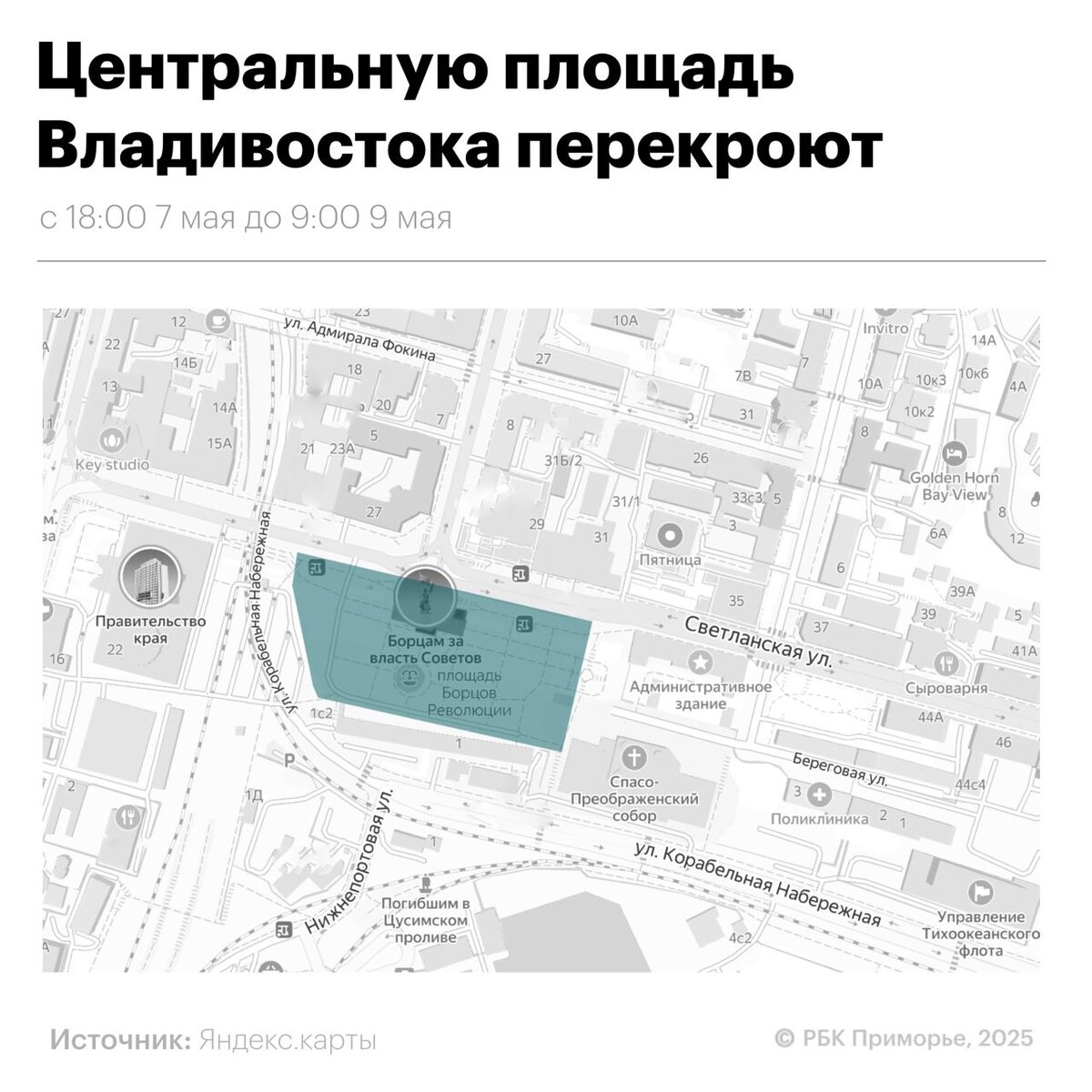 ❗️Центральную площадь Владивостока закроют для посещения из-за подготовки ко Дню Победы