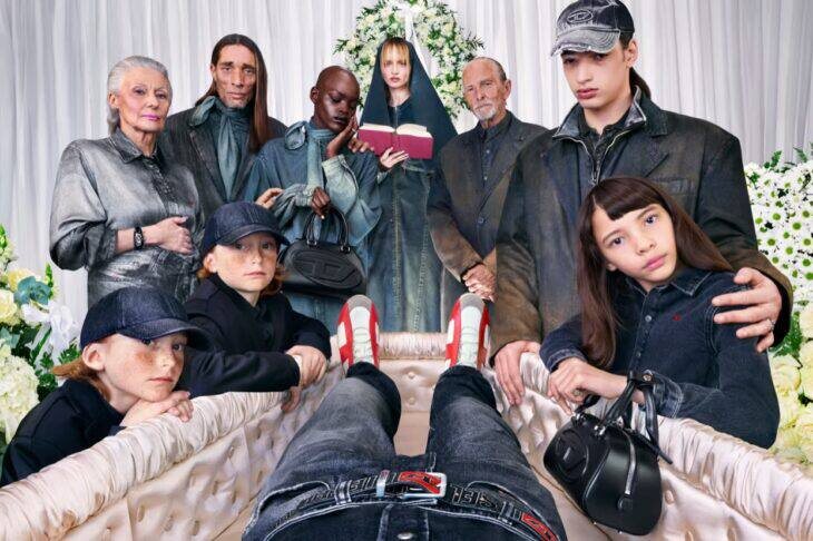 Diesel FW25 Рассказывает о жизни, проведенной в джинсовой одежде Кампания FW25 рассказывает сюрреалистическую историю существования людей, одетых в Diesel, от первого вздоха до загробной жизни.