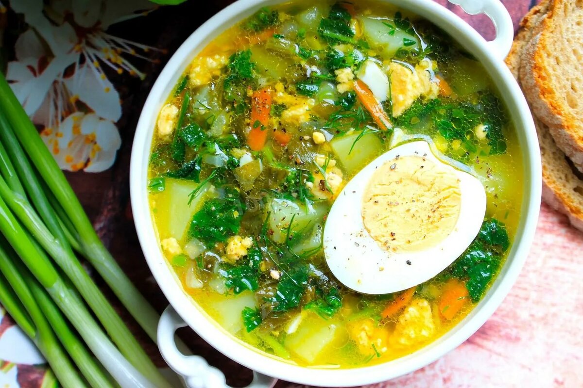 Щавелевый суп — это легкое и освежающее первое блюдо, особенно популярное весной и летом благодаря яркому кислому вкусу и наличию витаминов. Вот проверенный временем рецепт традиционного русского зеленого щавелевого супа. Основные ингредиенты: - Щавель свежий — 200–250 г - Картофель средний — 2–3 шт. - Морковь небольшая — 1 шт. - Лук репчатый небольшой — 1 шт. - Куриное яйцо — 2 шт. - Растительное масло для жарки — 2 столовые ложки - Сметана — по вкусу - Уксус яблочный или лимонный сок — 1 чайная ложка (по желанию) - Зеленый лук, укроп, петрушка — для подачи - Соль и свежемолотый чёрный перец — по вкусу Процесс приготовления: Шаг 1: Подготовка овощей 1. Почистите и помойте овощи. Картошку нарежьте средними кубиками, морковь натрите на средней терке, лук мелко покрошите. Шаг 2: Жарка овощей 2. Налейте растительное масло в сковороду и поставьте на огонь. Выложите лук и обжаривайте его на среднем огне до прозрачности. 3. После лука добавьте морковь и пассеруйте вместе ещё 3–4 минуты до мя