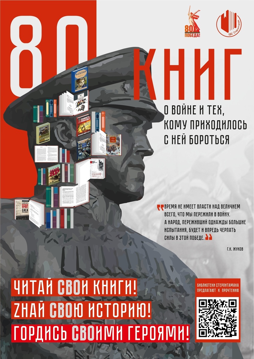 #БиблиотекиСтерлитамакаКонкурс, посвященный 80-й годовщине Победы в Великой Отечественной войне, организован Российской государственной библиотекой искусств при поддержке Российской библиотечной ассоциации.Плакат «80 книг о войне» в числе 12 финалистов среди 386 участников из 62 регионов России. Помимо непосредственного графического изображения он содержит активную ссылку на электронный ресурс с книгами о войне, расположенный на официальном сайте библиотечной системы Стерлитамака.Работы финалистов будут опубликованы в виде комплекта открыток и разосланы по библиотекам России для проведения акций памяти.С нетерпением ждем объявления победителей на Всероссийском библиотечном конгрессе — XXIX Ежегодной конференции Российской библиотечной ассоциации, который состоится 29 мая в г. Ижевске.