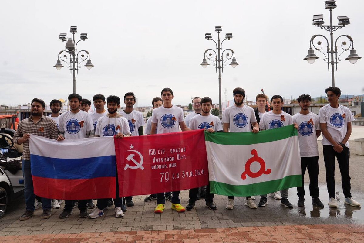 ▶️ В мероприятии приняли участие более 30 студентов, среди которых были и иностранные студенты. На самой высокой точке были водружены Российский и Ингушский флаги, а также знамя победы над фашизмом. Этот момент стал ярким напоминанием о мужестве и стойкости наших предков, которые отстояли свободу и мир для будущих поколений.