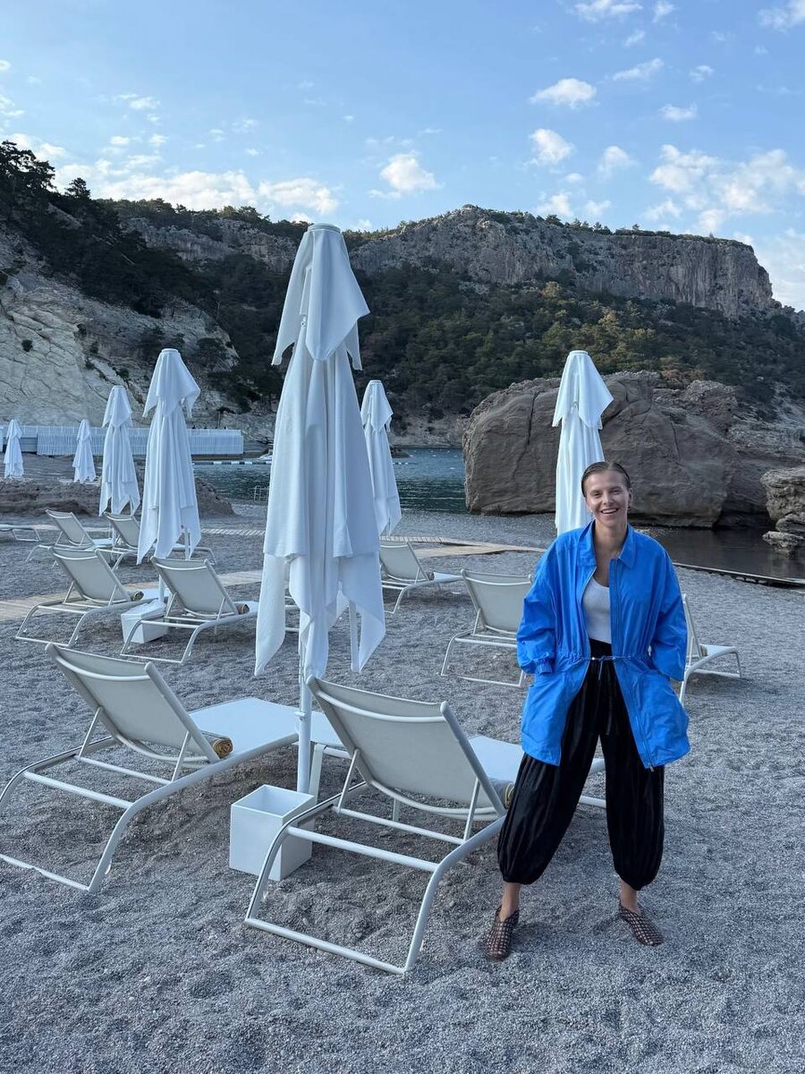 Образы в отпуск от Марины Голомаздиной и Роберта Нуретдинова На Марине — футболка Oversized и джинсы Straight 315, а на плечи накинут джемпер из кашемира. Для прохладных дней у моря — ветровка из тафты. Роберт — в толстовке с начесом и брюках из фактурной пряжи. В качестве первого слоя — базовый лонгслив из мягкого хлопка. Другие идеи для парных образов смотрите на сайте, в приложении и магазинах 12 STOREEZ