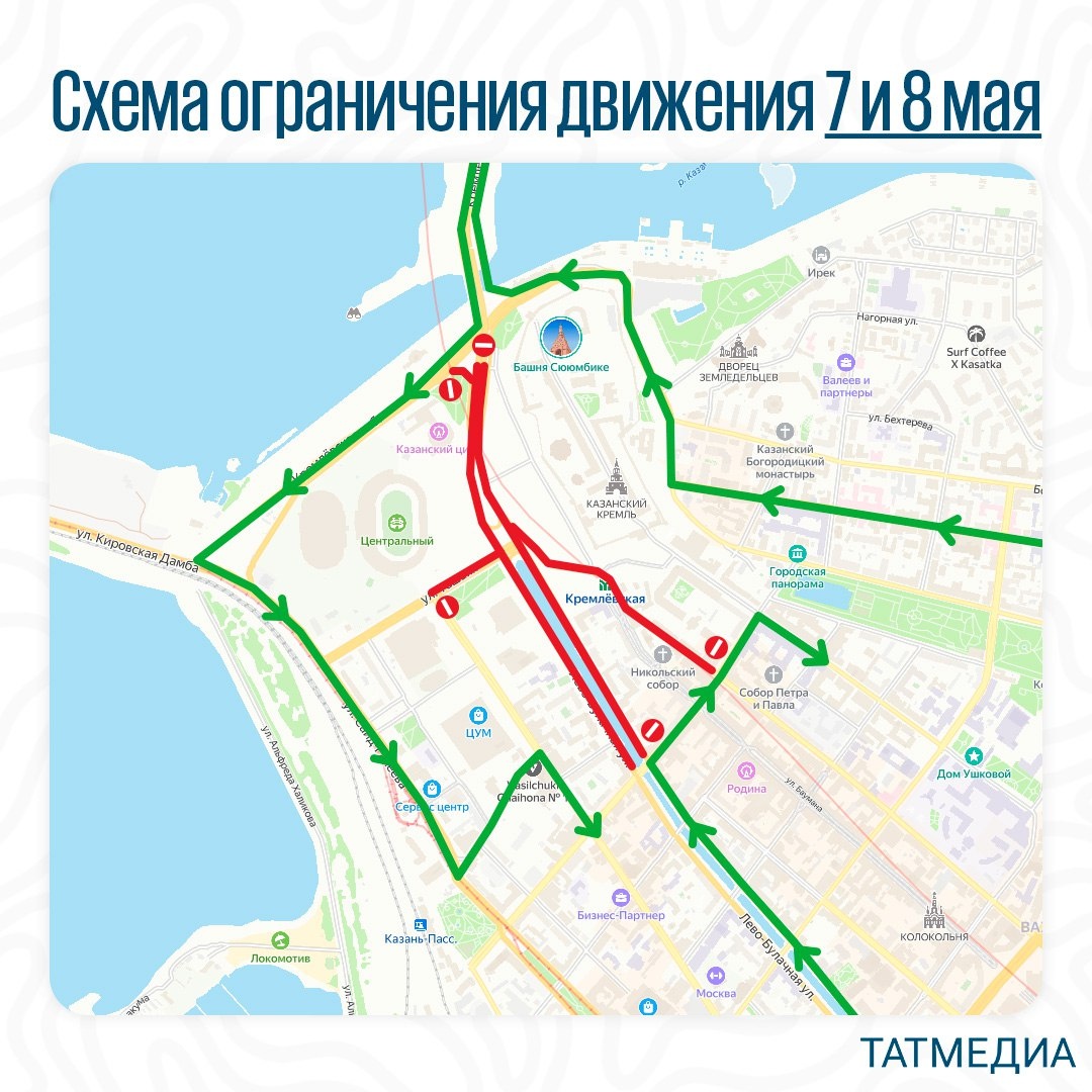 В ответ на пост ⚜️🚗 Сегодня центр Казани перекроют Причина – подготовка к празднованию 80-летия Победы. Ограничения введут сегодня с 16:00 до 23:30. @tatmediaofficial