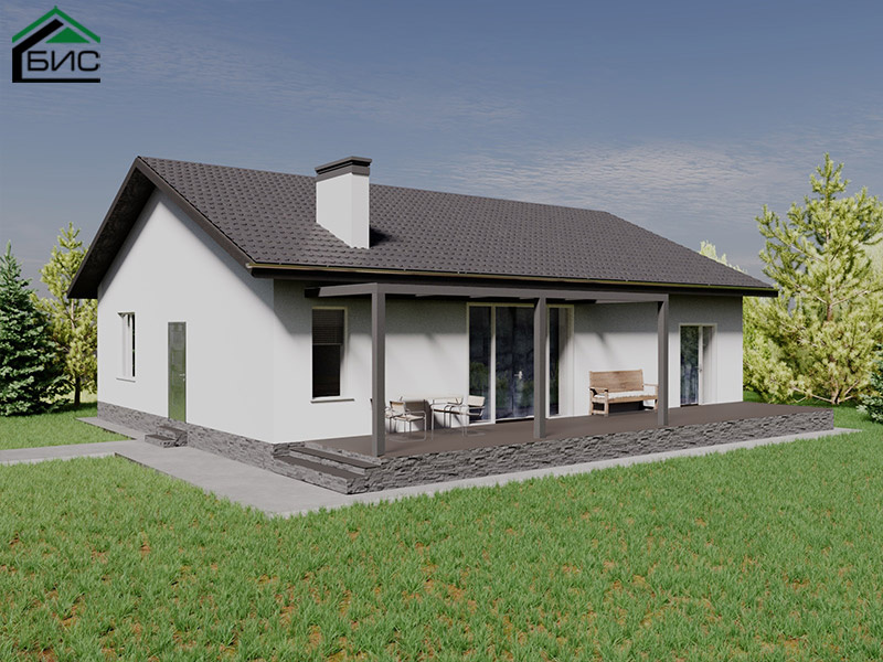 Проект одноэтажного дома для комфортного проживания 3-4х человек. Общая площадь дома составляет 124,1 кв.м., внутри которого продумано всё для вашего удобства. Главной особенностью коттеджа является просторная кухня-гостиная, которая имеет выход на просторную террасу — отличное место для семейных ужинов, барбекю и приятных встреч с друзьями. Терраса обеспечивает не только расширение жилого пространства, но и прекрасную возможность наслаждаться природой и солнечными днями. Дом состоит из трёх уютных спален, включая мастер-спальню с собственной ванной комнатой площадью 27,2 кв.м. и две дополнительные спальни, одна из которых также имеет выход на террасу и может использоваться как кабинет с отдельным входом. Каждая комната уютная и светлая, создающая атмосферу покоя и уюта. Кроме того, предусмотрено техническое помещение для хранения бытовых и хозяйственных принадлежностей. Продуманная планировка и использование качественных материалов делают этот дом не только красивым, но и максимально