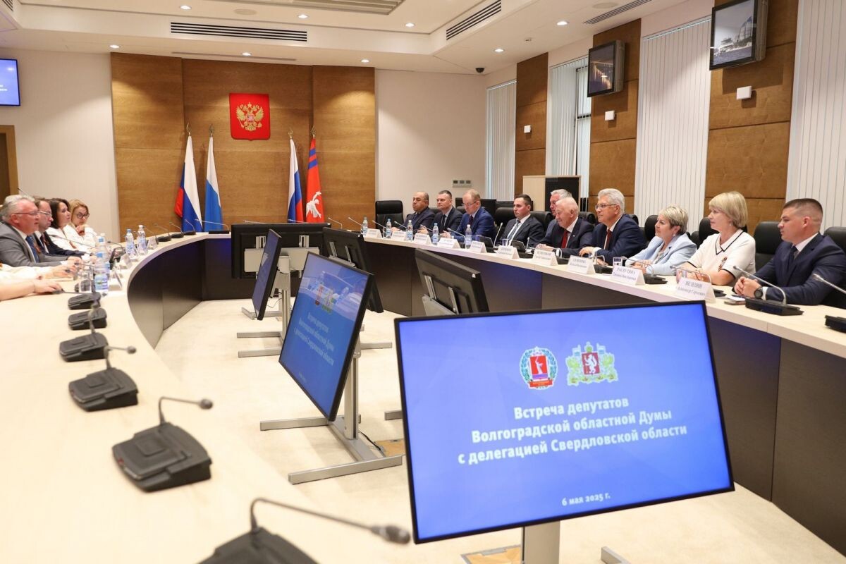 Встреча депутатов Волгоградской областной Думы с делегацией Законодательного Собрания Свердловской области прошла на площадке регпарламента. В мероприятии приняли участие председатель Волгоградской областной Думы Александр Блошкин, депутаты облдумы Александр Нелепин, Татьяна Распутина, Наталья Семёнова, Сергей Четвериков и председатель Волгоградской городской Думы, заместитель секретаря Волгоградского реготделения «Единой России» Владлен Колесников. Делегацию Свердловской области представили депутаты Законодательного Собрания Свердловской области Сергей Никонов, Елена Чечунова, председатель совета Фонда губернаторских программ, заместитель губернатора Свердловской области – министр по управлению государственным имуществом региона Алексей Кузнецов и активисты регионального отделения партии. «Наша встреча проходит накануне 80-летия Великой Победы – священной для каждого россиянина даты. Для всех нас имеет приоритетное значение работа по защите исторической правды, патриотическому воспи