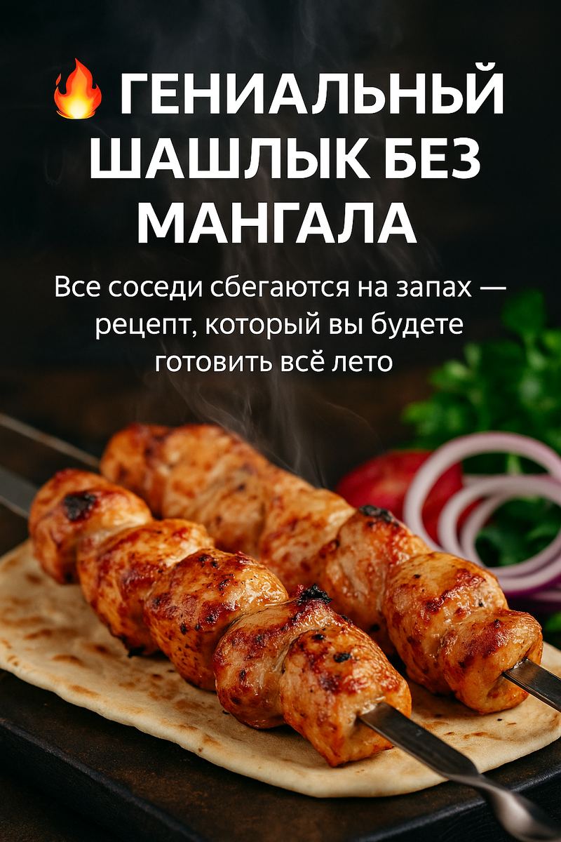 📌 Забудьте всё, что знали о шашлыке. Вам не нужен мангал, угли или долгие маринады. Этот рецепт — настоящая находка для тех, кто хочет шашлык быстро, сочно и прямо на сковороде или в духовке. Подавайте с соусом из сметаны и чеснока, свежими овощами и лепешкой. Готово! Ставьте ❤️ и подписывайтесь — здесь только настоящая вкуснота без лишней возни!