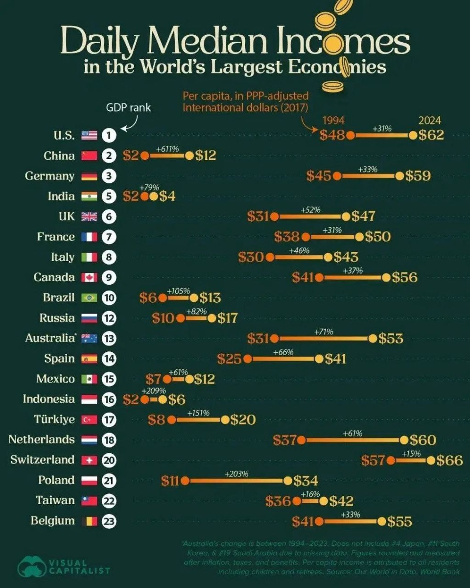 Медианный доход в крупнейших странах мира. @nemediatema