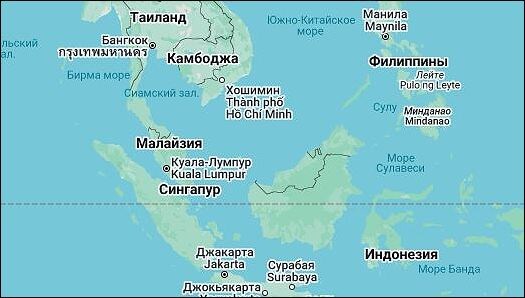 а на более подробной, видна россыпь островов общей площадью аж 735,6 км², хотя сингапурцы усердно увеличивают её, намывая новые островки...